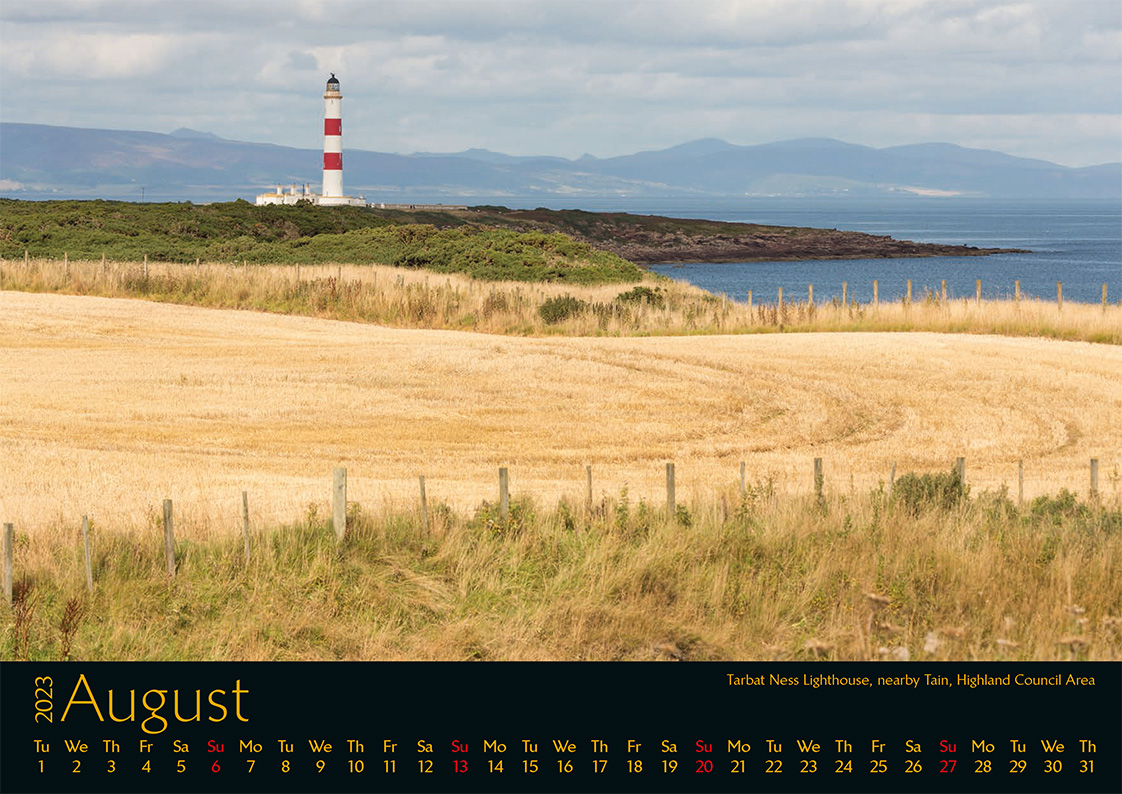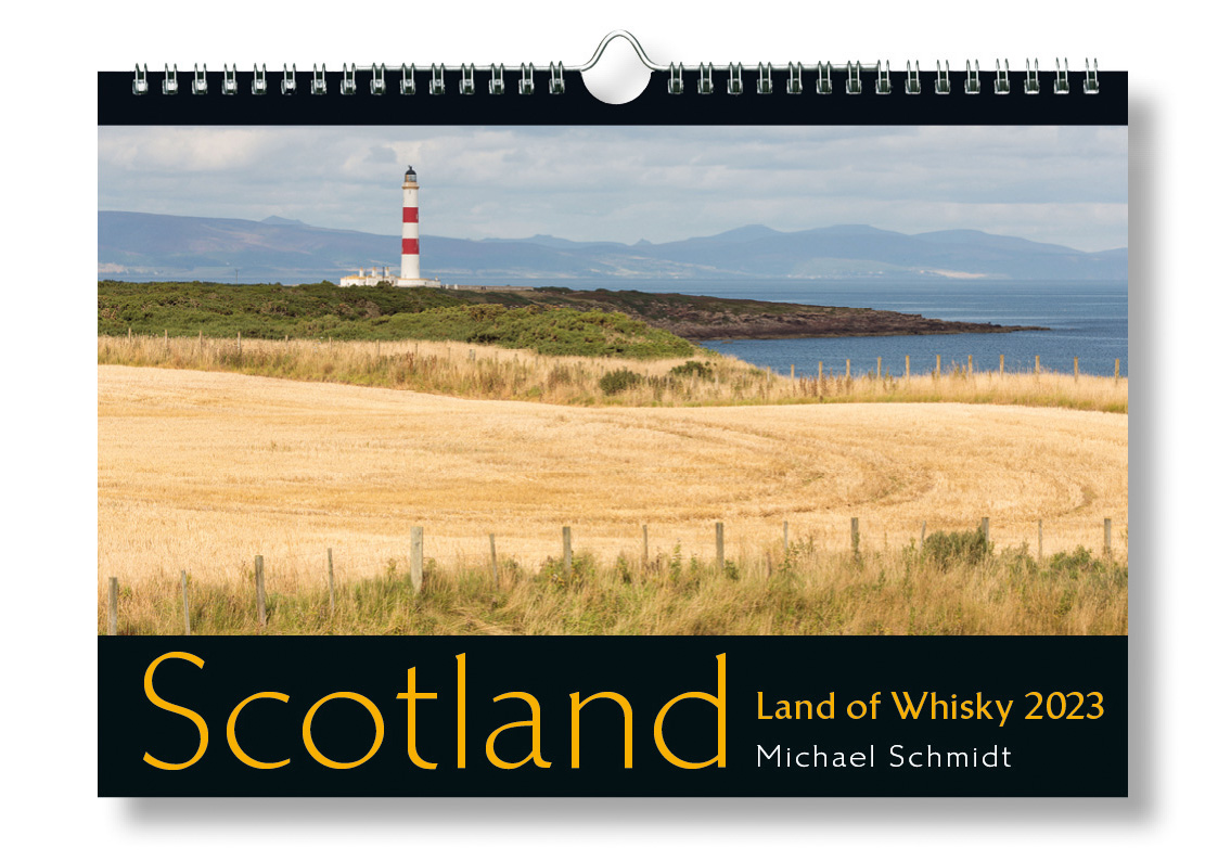 Mit seinen roten und weißen Streifen ragt der Tarbat Ness Leuchtturm stolz in den Himmel. Hier, an der schottischen Ostküste, gedeiht in Sichtweite des Meeres goldgelbes Getreide. Das ist die Grundlage für den Scotch, den schottischen Whisky. Der neue „Scotland-Land of Whisky“- Kalender zeigt auch 2023 die schönsten Seiten Schottlands.