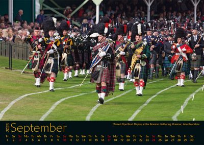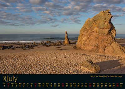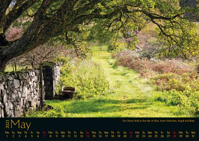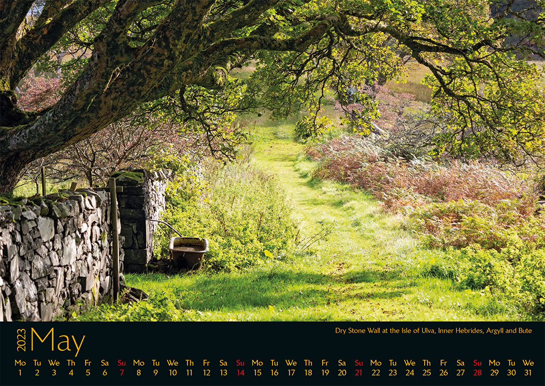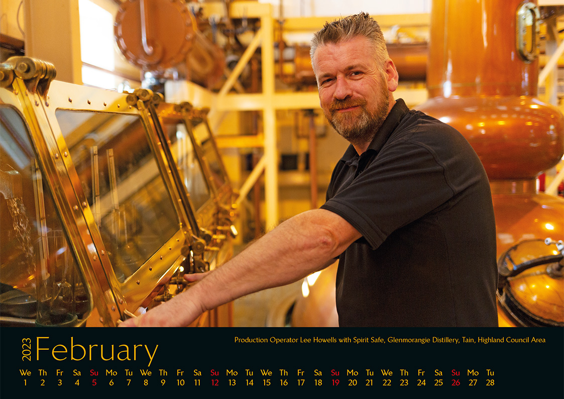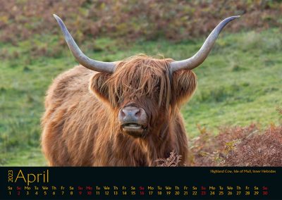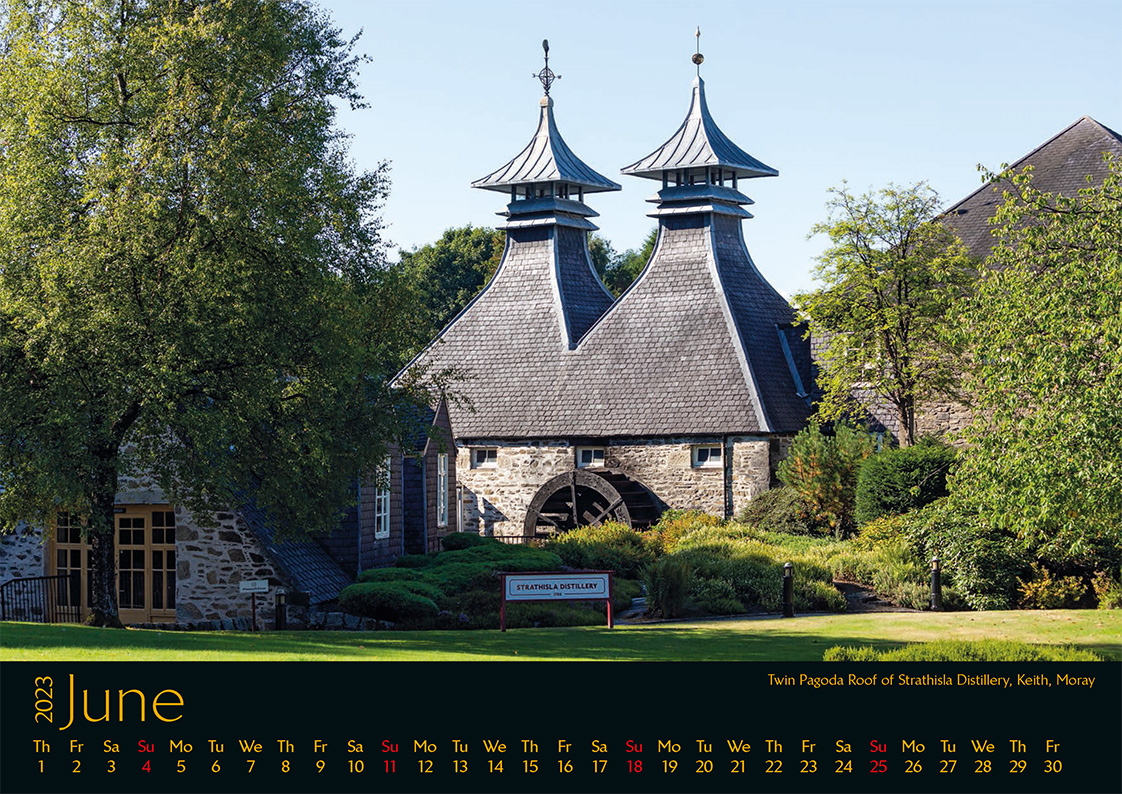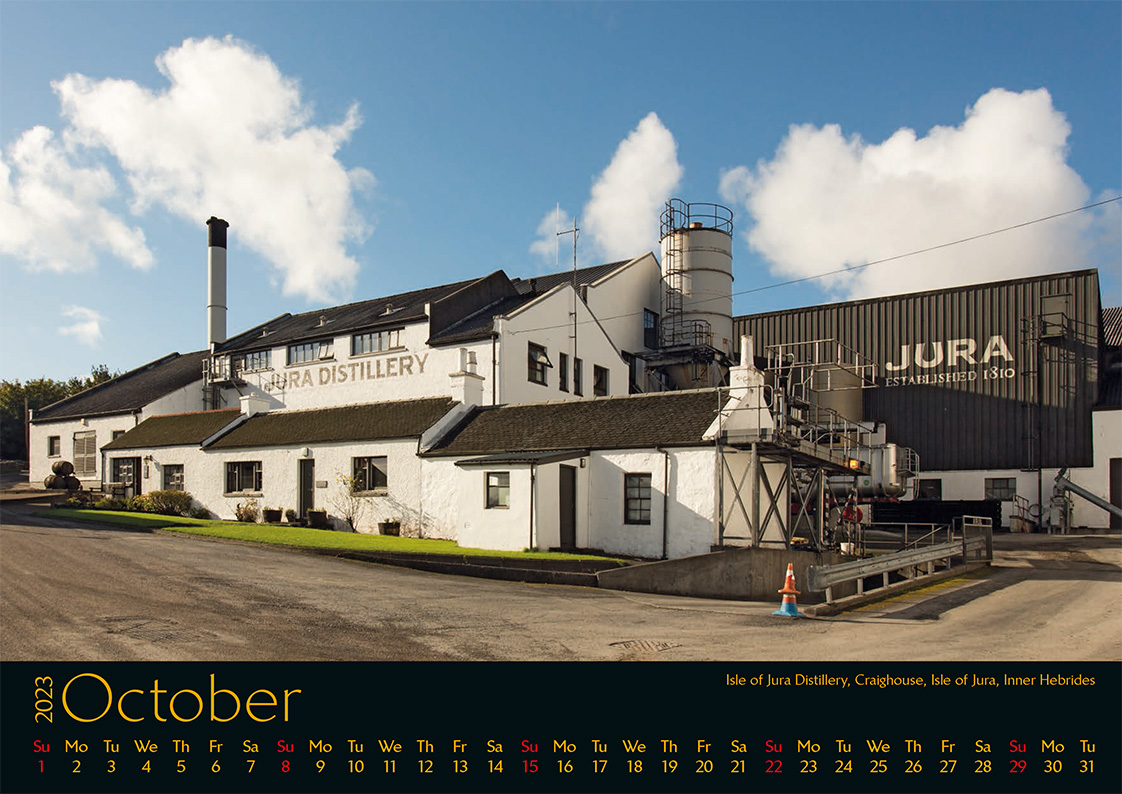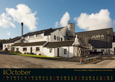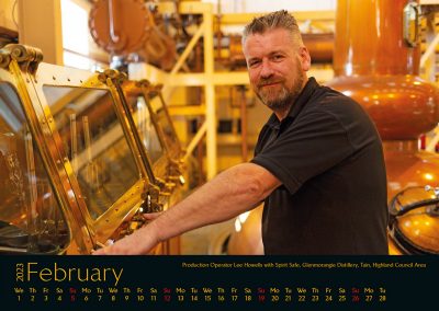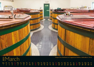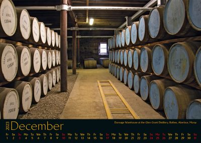 Der Kalender führt zu den herrlichen Sandstränden von Moray, zu den verwunschen Gärten der Hebrideninsel Ulva und zottigen Hochlandrindern. Mit dabei sind auch die marschierenden „Drum Majors“ einer Dudelsackband beim Highland Gathering in Braemar. Natürlich führt der Kalender auch zu namhaften Brennereiadressen. Zu sehen sind der „Still Man“ Lee Howells von Glenmorangie, die berühmten Zwillings-Pagoden von Strathisla und die hölzernen Gärbottiche von Cragganmore. Bei Glen Grant besuchte der Fotojournalist das Fasslager, wo so manche Whiskyschätze schlummern.