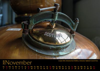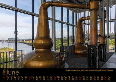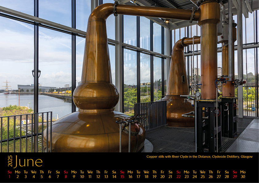 Das Team der Clydeside Distillery hat einen einmaligen Ausblick. Rund um die kupfernen Brennblasen geben Glasfenster den Blick frei auf das grandiose Panorama des Flusses Clyde. Die Brennerei in Schottlands größter Metropole Glasgow ist alles anderes als alt, erst seit 2017 wird hier in einem ehemaligen Pumpenhaus eines Docks destilliert. Schottischer Maltwhisky hat nicht nur eine große Vergangenheit, sondern auch eine spannende Zukunft. Das zeigt der neue Bildkalender „Scotland-Land of Whisky 2025“, der die Herzen von Schottland- und Whiskyfans höher schlagen lässt.